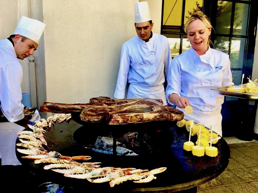 Dakle, u petak oko jedan na Esplanadinoj je terasi počeo najotmjeniji event ovoga ljeta u Zagrebu. Sommelier Ivan Šneler točio je Tomčev Rose i Diplomat, dok je chef Ana Grgić prvo iznijela velika pladnjeve sirovih kamenica, pa zatim brbavica u umaku od šafrana, pa neobičih ježinaca u kremi od naranče. Zatim smo probali sjajnu selekciju irskih i američkih black angus steakova, pečenih na pravom ugljenu na terasi.