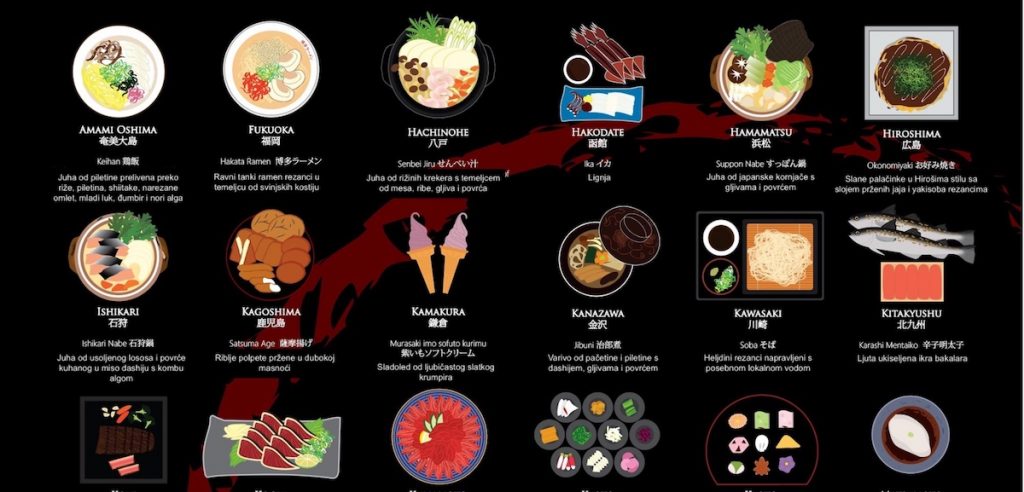 Za ozbiljno a pristupačno učenje o japanskoj hrani, blog Japanese Foodie jedna je od popularnijih adresa. Njihov glavni adut su informirane, lijepo dizajnirane infografike koje olakšavaju snalaženje u intrigantnim japanskim tradicijama, regionalnim kuhinjama i običajima. Nakon njihovih viralnih infografika s objašnjenjima ramena, jelima od jela ili japanskih snackova, na internetu se ovih dana dijeli nova infografika, koja objašnjava najcjenjenije i tradicionalne delikatese japanskih regija, svrstane po gradovima. Sve infografike tiskaju kao velike postere, ako podržite njihovu kampanju na Kickstarteru. Dijelimo originalnu infografiku, s prijevodima objašnjenja jela.