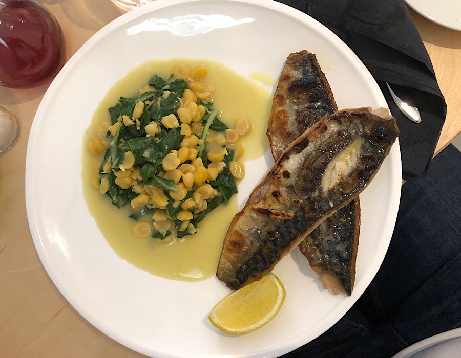 Uz to postoji i lunch menu koji se u četvrtak sastojao od tagliatella s lungićem i sušenim rajčicama i salate, za 74 kune. Mi smo naručili skušu u umaku od limuna, s blitvom i slanutkom, te tartar biftek. Riba je bila lijepo, sočno, precizno pečena, s dobronzapečenom kožom, a osobito je važno što slanutak i blitva nisu bili prekuhani.