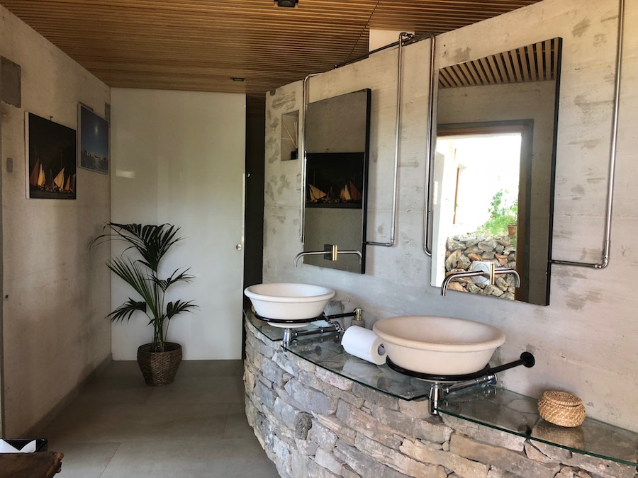 Fešta se sastoji od marine u kojoj je jučer bilo usidreno par impozantnih brodova, od glampinga s pet velikih luksuznih šatora, sanitarnog čvora koji dizajnom i udobnošću asocira na luksuzne pacifičke resorte, bara za koji je kartu koktela bio radio Vjenceslav Madić Kishoni, te od velikog , dobro uređenog restorana s nizom vinskih vitrina, bazena i akvarija s jastozima i hlapovima.