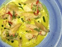 Brancin na kremi od kukuruza, s ukiseljenim koromačem i peršinom