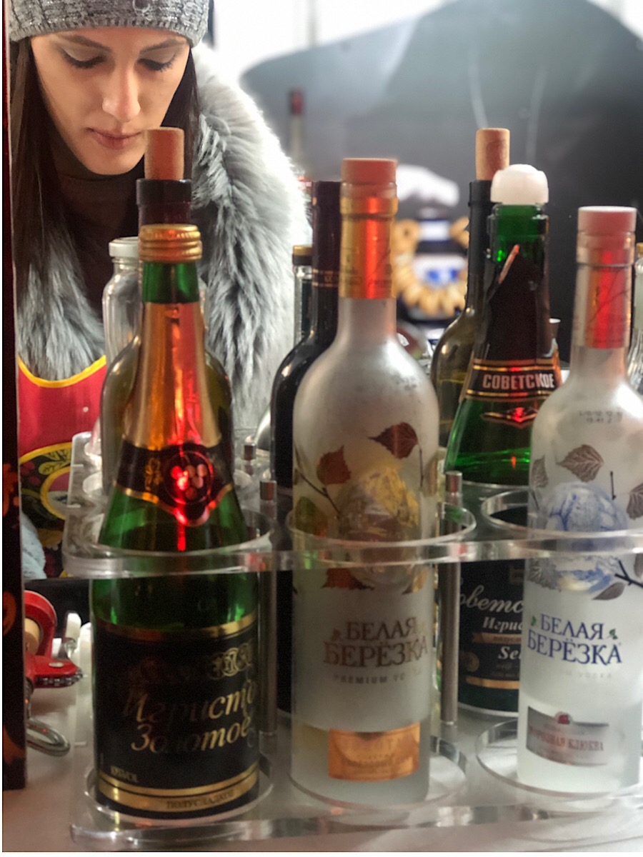 Na platou radi desetak kućica, među kojima su nam pažnju privukle100 % Istra i Rasputin. Rasputin je kućica s ruskom hranom i votkama koju drži predsjednica zagrebačke ruske zajednice. Ispred velikog Rasputinovog portreta na roštilju se peče šašlik, reže se losos s kamčatke, u velikim poklopljenim loncima krčka boršč, a gosti se griju votkama destiliranima s pinjolima, šumskim bobica i sedmerostruko destiliranim votkama