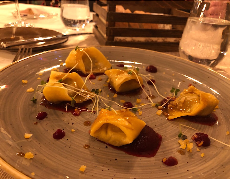 Prilozi, pečeni krumpir i rosti u obliku kocki bili su okej, dok su predjela, ravioli s junećim repom i salata od kozjeg sira iz Kumparičke s dunjom, lješnjacima i brokulom, pokazala da u Jistu zaista znaju kompetentno kuhati.