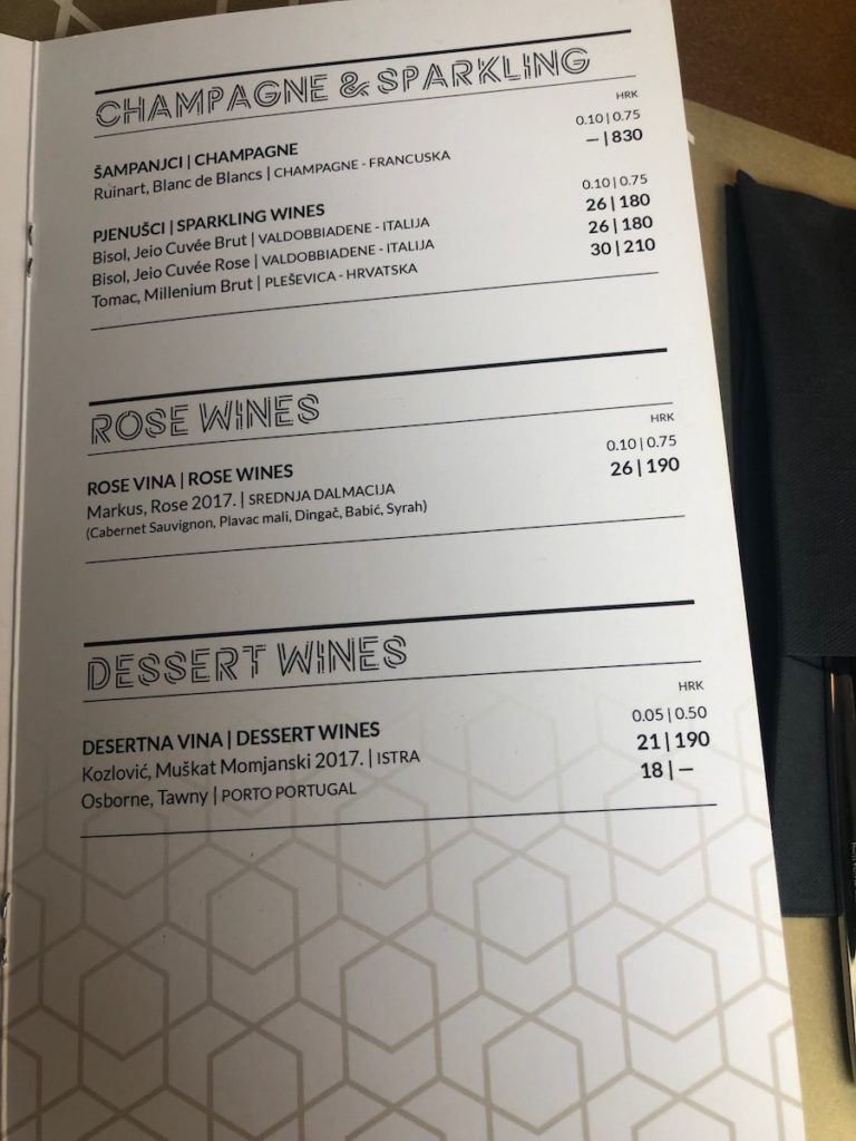 Nadalje, A Posto po istoj cijeni rastače i odlični Korlat Supreme Syrah iz 2012. dok se nama najspektakularnijim činio Weiningerov Riesling Nussberg za 38 kuna po čaši, pa smo jučer prije dolaska glavnih jela popili nekoliko čaša. Kao svaki upmarket talijanski lokal, A Posto drži i dobru vodu, San Pellegrino i Acqua Panna.