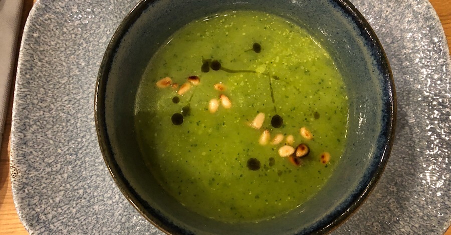Naručili smo finu slatkastu juhu od mrkve s izraženim okusom kurkume i bučinim košticama, i tamnozelenu juhu od tikvica u kojoj je vjerojatno bilo nešto špinata ili blitve, s tostiranim pinjolima.