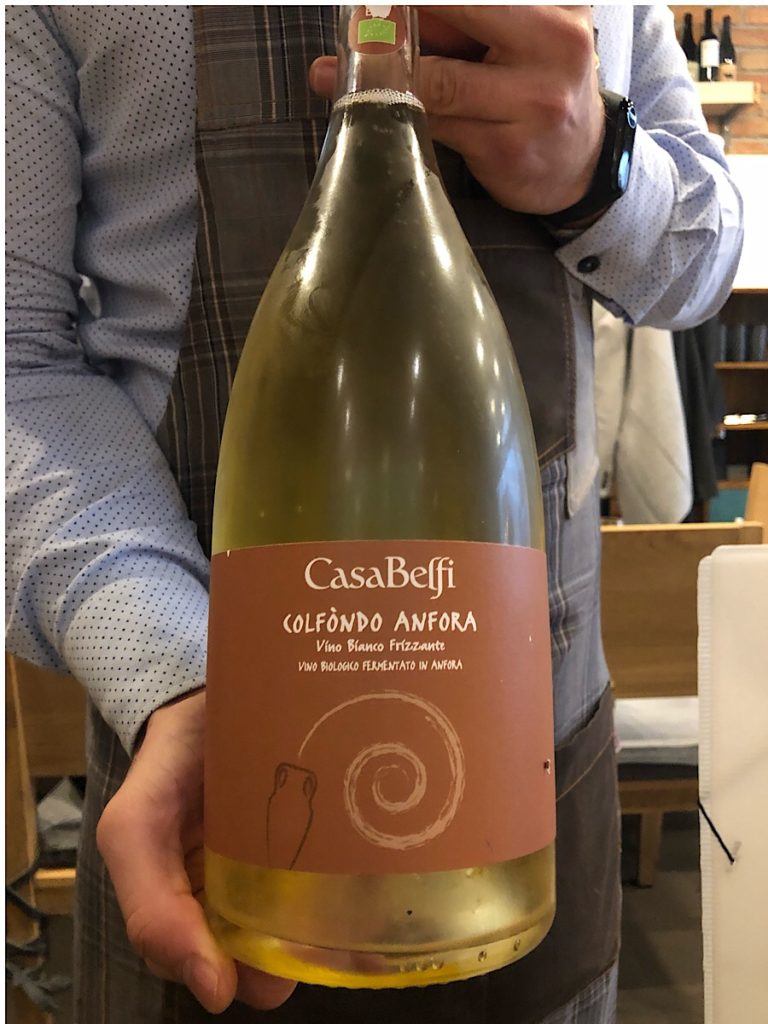 Situacija s vinima trenutno je, nažalost, kaotična, jer nekih važnih vina s karte trenutno nema u restoranu. Ipak, toplo preporučujemo Casa Belfi pjenušac iz Prosecca, proizveden u amforama pa šampanjiziran tradicionalnom metodom.