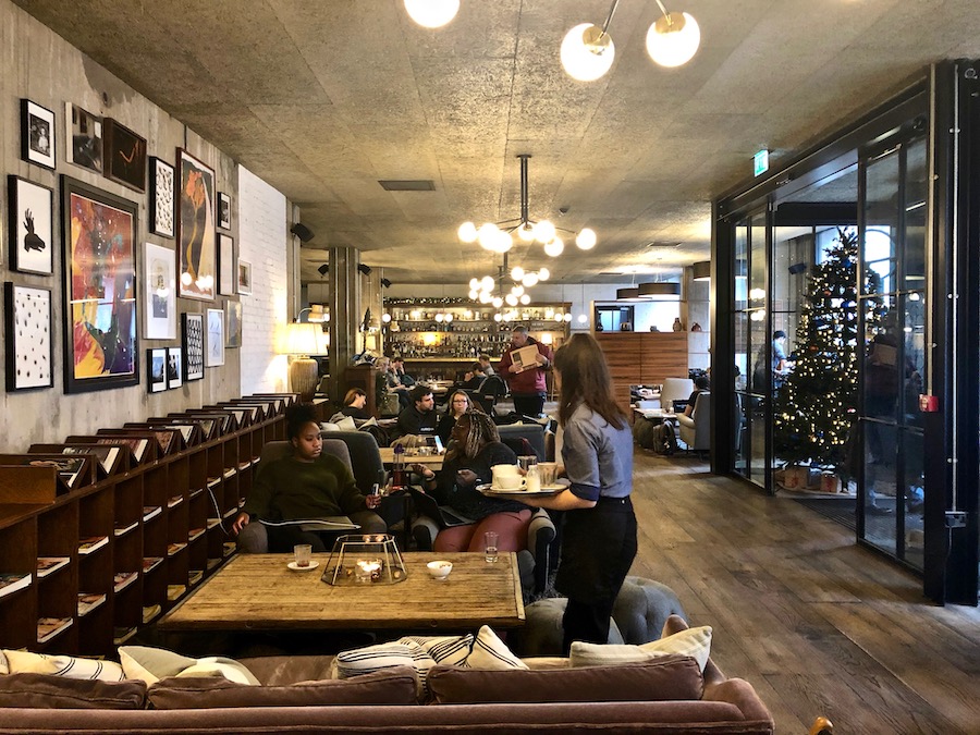Hoxton se predstavlja kao hub kreativne industrije. Od ranog jutra do kasno iza ponoći, lobi je krcat ljudma koji rade na laptopima, satima, uz jednu kavu ili čaj, i nitko im ne prigovara da zauzimaju mjesto, jer novac dolazi poslije pet popodne kad se gosti masovno bacaju na alkohol.