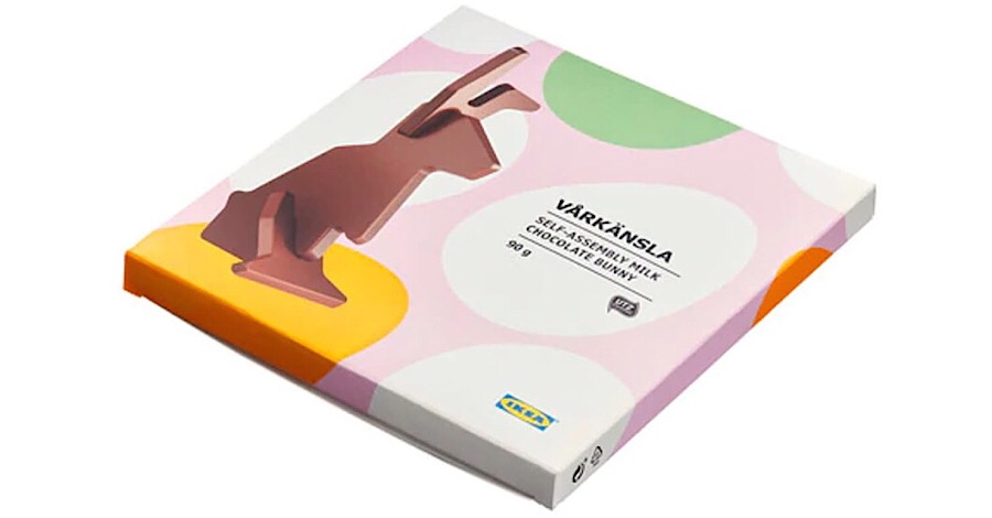 Baš je tu ideju toplog doma IKEA odlučila iskoristiti na svojim odjelima hrane. Napravili su  VÅRKÄNSLA, čokoladnog uskršnjeg zeca koji se kupuje u plosnatoj kutijici, u dijelovima koje kupci moraju sastaviti sami. Zec je od mliječne čokolade, kako ima certifikat za održivi uzgoj (sljedivost se može pratiti preko IKEA web stranice) i košta 30-tak kuna. Prvo su ga pustili u svoje britanske trgovine, a do Uskrsa bi trebao biti u cijeloj mreži.