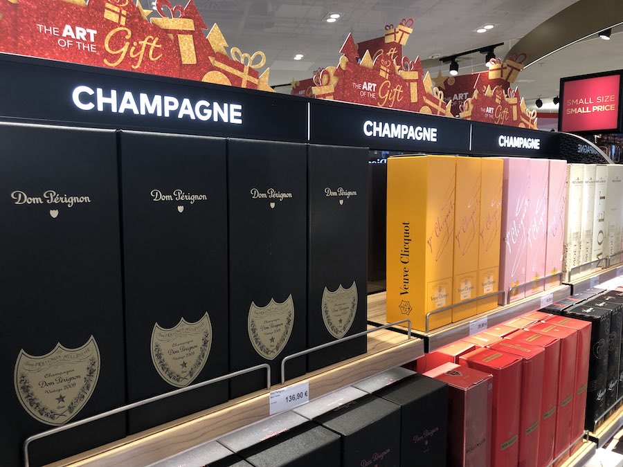 Svakodnevni brendovi jakih pića često se prodaju po akcijskim cijenama. Izbor šampanjaca nije baš osobit, ali smo uočili Perignone iz 2008. i 2009. godine, koji koštaju 139 eura, što je 250 do 300 kuna jeftinije nego u zagrebačkim vinotekama.