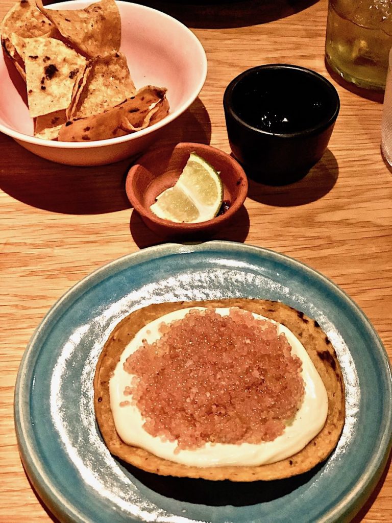 Uslijedile su genijalne kamenice u umaku od citrusa, habañera i pasjeg trna te tostada s mirisnom kremom od jalapeña i puno ikre. Za glavna smo jela naručili tacose od svinjetine i mariniranog luka srebrenca i tacose od jalapeña, umaka od habanera i bukovača. Svinjetina je bila prekrasno meka i puna slatkog soka, dok je luk ukiseljen s čilijem i pasjim trnom zadržao samo bogate herbalno-cvjetne elemente, bez traga onog uobičajenog neugodnog aftertastea.