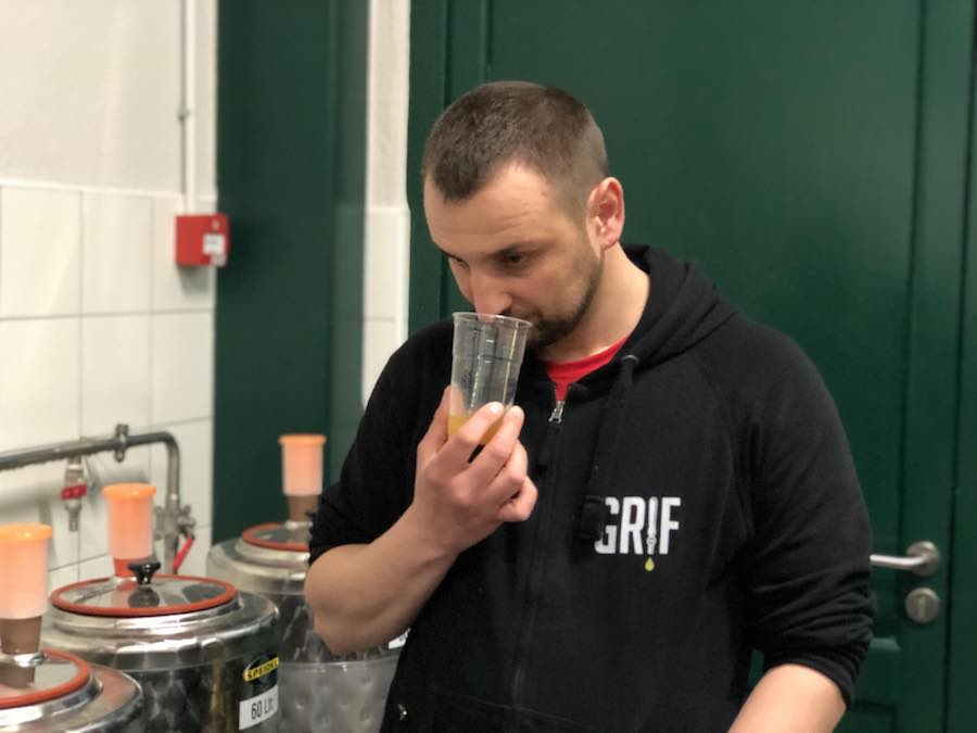Grifov homebrewing sistem, zapremine nekih pedesetak litara, zapravo je mali laboratorij čiji se pokusi i rezultati kasnije pretvaraju u proizvodnju tržišnih verzija Grifa, koja se odvija u susjednoj prostoriji, odmah do laboratorija, gdje se osim par malih kotlova i fermentora još nalaze dva ili tri hladnjaka s vrećicama hmelja, pa jedan točionik za svježe kuhano pivo, pa list A4 papira zalijepljen na zid, s receptom za Grif iPA-u.