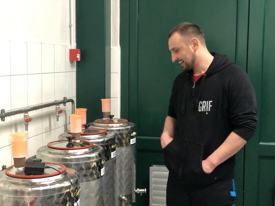 Nakon što nam je pokazao prve faze kuhanja piva, Grifov nas je glavni pivar proveo kroz minijaturnu tvornicu s mašinama za usitnjavanje slada, kotlovima i fermentorima, ali bez punionice, ne samo za boce, nego i za bačve. Sve bačve u Grifu pune se ručno. ištuk kaže da ih stignu napuniti petnaestak na sat.