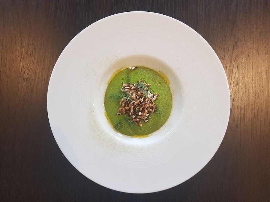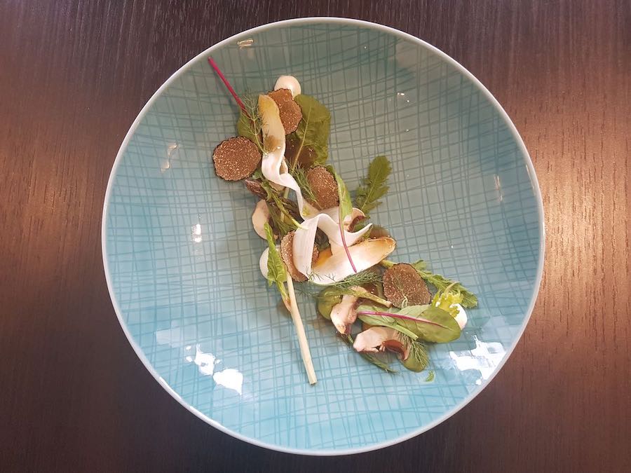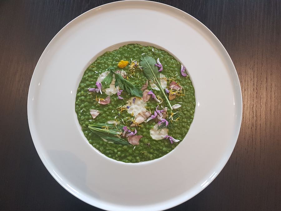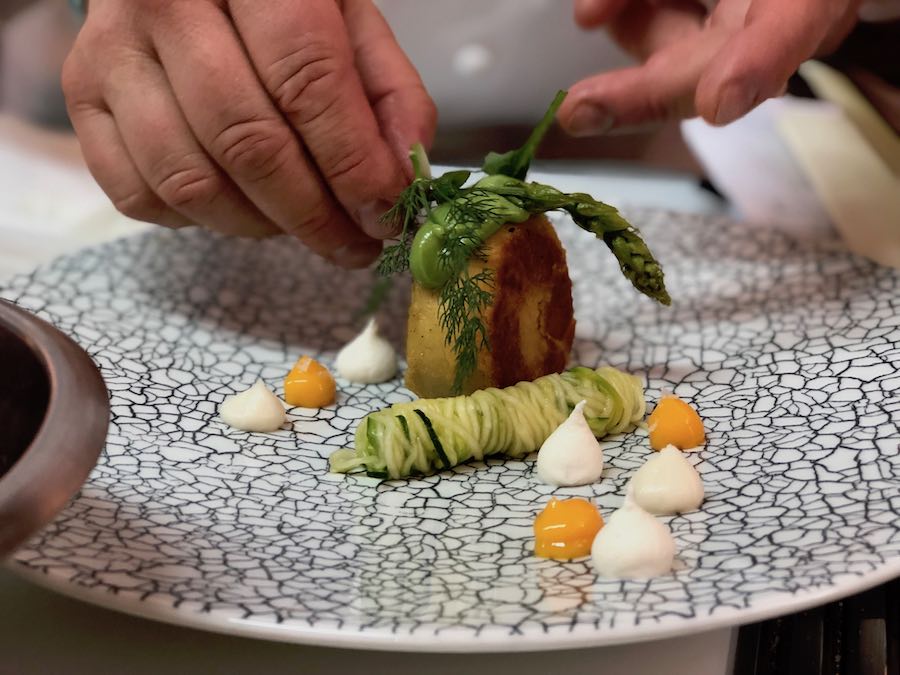 Burger od slanutka ukrašen jarkozelenim šparogama, serviran je u društvu fantastičnih malih krokanta od istarskog ulja. “Vidite ovu biljčicu,” Scarellova je podigao mali vrh bljušta s burgera, “Godinama smo za nju govorili samo da je gorka i da nije baš nešto. Ali kad smo joj dodali malo čilija, kap limuna imalo sojinog umaka, propjevala je. Ne vrednujete lokalnu kuhinju tako da radite samo s lokalnim namirnicama, nego tako da otvorite um i upotrijebite sve što možete kako biste lokalne namirnice otkrili u novom svjetlu, i prezentirali ih kao dragocjenosti.”