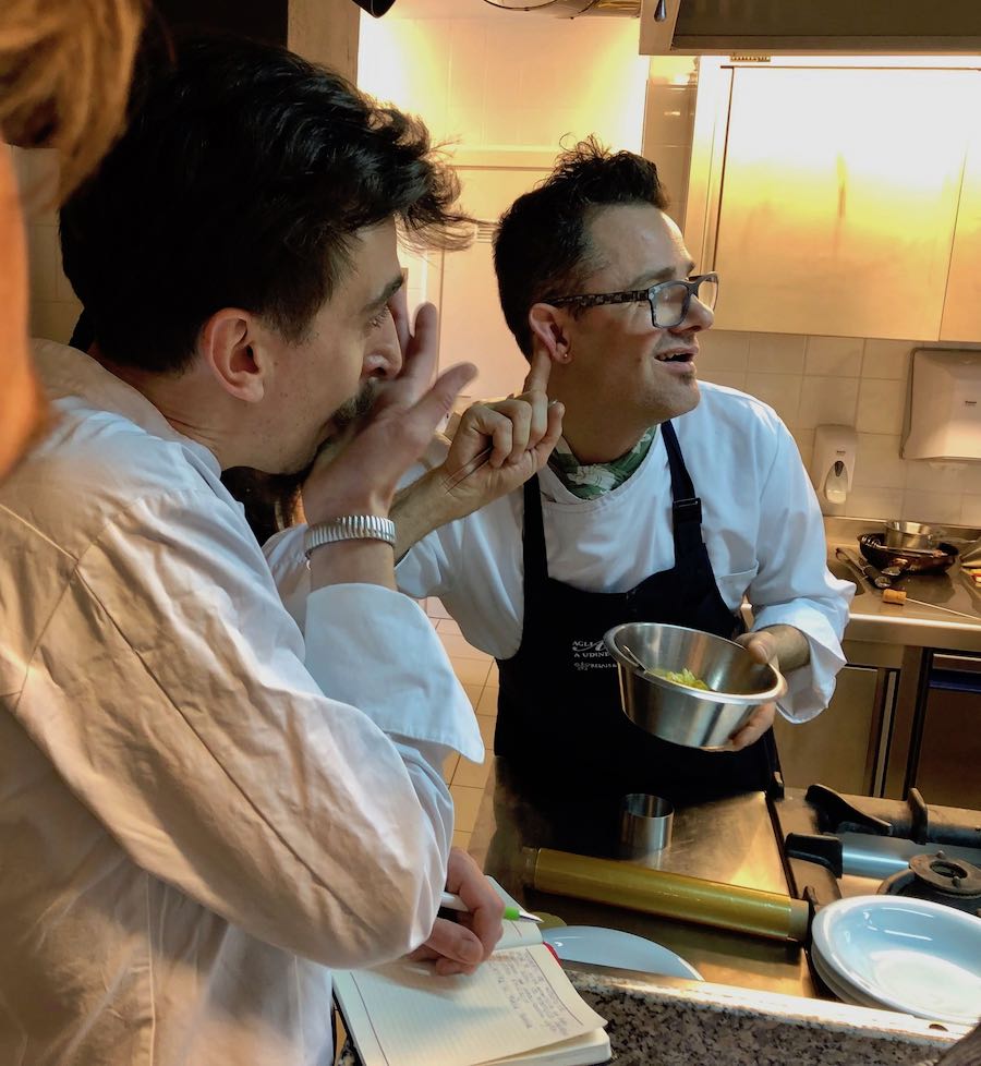 Scarellov masterclass a kojemu se okupilo dvadesetak mladih kuhara, bio je koncentrat stručnih profesionalnih informacija. Ali atmosfera je bila neformalna, vesela i energična, s Raffaellom Mazzolinijem u ulozi MC-ja, koji je duhovitim komentarima povremeno izazivao gromoglasan smijeh, ipak ne skrećući pažnju s ekspertize koja se dijelila u AZRRI-jevoj kuhinji. “Na radionice ne dolazimo docirati ni dijeliti recepte,” kažu Mazzolini i Scarello, “Dolazimo se suočiti s kolegama, reći mi radimo ovako – kako vi radite?” Na koncu, dodaju, smisao njihova posla nije tehniciranje, nego usrećivanje gostiju.