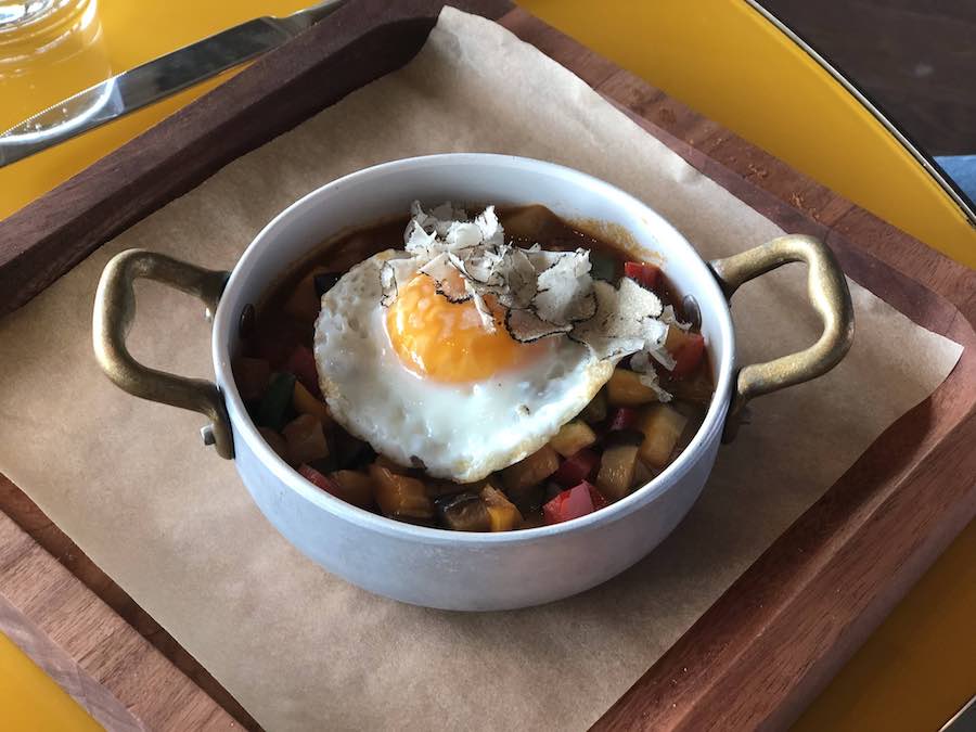 Iz ovog zaigranog i privlačnog menija naručili smo grilane tikvice sa skutom i prešanim krastavcima, koktel s kozicama, oslića i ratatouille s jajem na oko i svježim tartufima. Koktel je bio naglašeno svjež, s puno povrća,. ali svejedno bogat. Tikvice perfektno delikatne, oslić sočan, dok su žumanjak i tartufi ratatouilleu dali sasvim novu dimenziju.