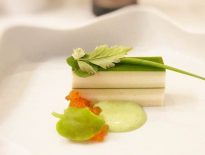 Iz ovog zaigranog i privlačnog menija naručili smo grilane tikvice sa skutom i prešanim krastavcima, koktel s kozicama, oslića i ratatouille s jajem na oko i svježim tartufima. Koktel je bio naglašeno svjež, s puno povrća,. ali svejedno bogat. Tikvice perfektno delikatne, oslić sočan, dok su žumanjak i tartufi ratatouilleu dali sasvim novu dimenziju.