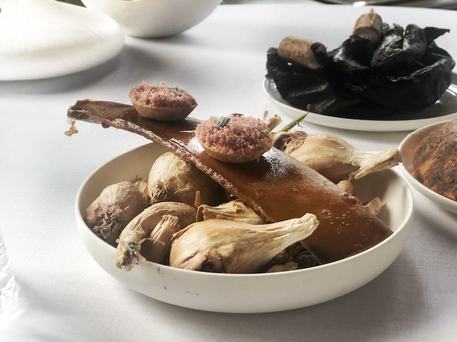 Uloga šampinjona i vinaigrettea jest da naprave kontrast spektakularno intenzivnim smrčcima. Smrčci su bili fantastični, a Allénoova strast prema umacima došla je do izražaja baš u tom jelu, čiji smo kompleksni putrasto-citrusni umak opet put umamija, pobrisali s tanjura ne samo žlicom nego i baguetteom. Specifičan okus umaku davali su dimljena scamorza i crni iranski limun. Allénoovi smrčci bili bi nešto najukusnije što smo pojeli cijele godine a ne samo u Ledoyenu, no iduća jela bila su još bolja.