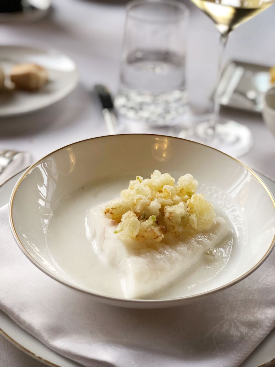 Uloga šampinjona i vinaigrettea jest da naprave kontrast spektakularno intenzivnim smrčcima. Smrčci su bili fantastični, a Allénoova strast prema umacima došla je do izražaja baš u tom jelu, čiji smo kompleksni putrasto-citrusni umak opet put umamija, pobrisali s tanjura ne samo žlicom nego i baguetteom. Specifičan okus umaku davali su dimljena scamorza i crni iranski limun. Allénoovi smrčci bili bi nešto najukusnije što smo pojeli cijele godine a ne samo u Ledoyenu, no iduća jela bila su još bolja.