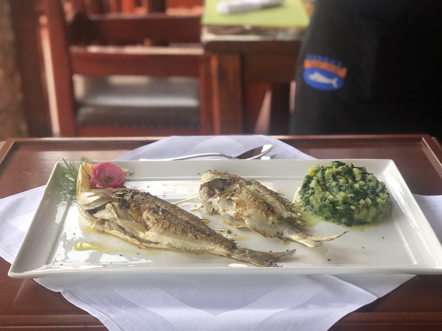 Počeli smo s uzorno svježim brbavicama s grilla i klasičnim starinskim koktelom sa škampima, raskošnim jelom koje srećom upravo doživljava renesansu. Nastavili smo s izvrsnom oradom, jednom od najboljih ove godine, i jako finim šaragom. Osim što su ribe bile jako svježe, u Starcu i moru su ih zaista perfektno ispekli. Meso je bilo čvrsto, lijepo sočno, ali nimalo sluzavo kao kod nedovoljno pečenih riba. U blitvu je, nažalost, zalutao neki nepotreban pojačivač okusa, ali su tekstura i boja blitve ostali jako dobri.