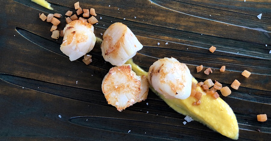 Školjke su bile male, što sugerira da ne dolaze iz uvoza, i jako slatke. Marmelada od kukuruza jako je ukusna i naravno opet slatka, dok je prženi lardo ovom jelu dao potrebnu hrskavu teksturu i mesni karakter.