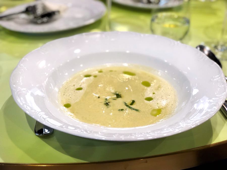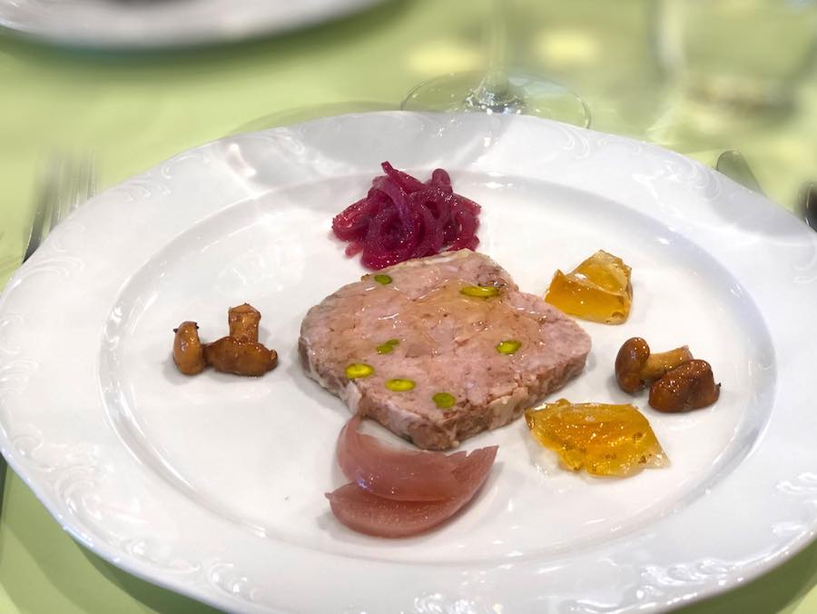 Zatim smo kušali sirovog kantara s ukiseljenom cvjetačom, narančama i svježim bobom, pa fuže s pestom od lješnjaka i lokalnih trava, te na kraju savršeno pečenog brancina, sočnog mesa i hrskave čvrste kože. Navečer nam je Macchi donio terinu od tri vrste mesa (janjetina, teletina, crna svinjetina) okruženu malim ukiseljenim lisičicama i ukiseljenim ljubičastim lukom i ljutikom, pa baršunastu velutu od divljih šparoga i školski pečene steakove od charolaisa i boškarina, koji odležavaju u velikom ageru izloženom u restoranu pokraj ulaza u kuhinju. Briljantni bearnaise dao je mesu onaj posebni dodir klase.