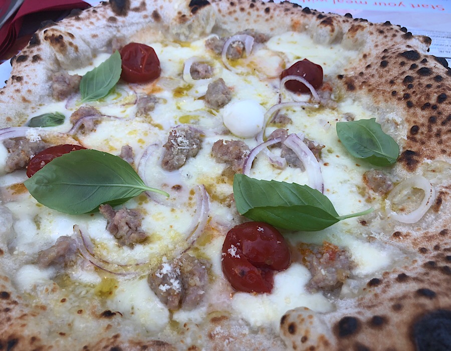 Bufalina je imala baš optimalan broj kuglica najkremastije mozzarelle, s par listova bosiljka i aromatičnom San Marzano rajčicom, dok su se na Ljutoj svinji lijepo poigravale kobasica i ljubičasti luk koji, kao i u svim dobrim restoranima nije zaudarao po luku. Tijesto je, hvala Bogu, bilo glavna zvijezda obje ove skoro savršene napolitane.