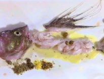 Meso i beurre blanc bili su tehnički perfektni, ali je ovom tanjuru nedostajalo nešto citrusa koji bi olakšali trostruku masnoću: kavijar je mastan, svinjetina je masna i beurre blanc je mastan. Sipa s lardom i dimljenim bujonom bila je jako ugodna i lako razumljiva, dok je tanjur s hrskavim fermentiranom povrćem, s tragovima kimchija, bio najoriginalnije jelo večeri, vizualno i teksturalno i konceptualno blisko Tvrtku Šakoti, premda se Šakota i Tschatchler ne poznaju niti je Tschatchler, koliko znamo, jeo u Navu.