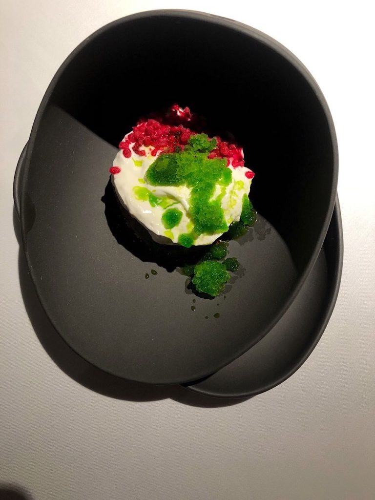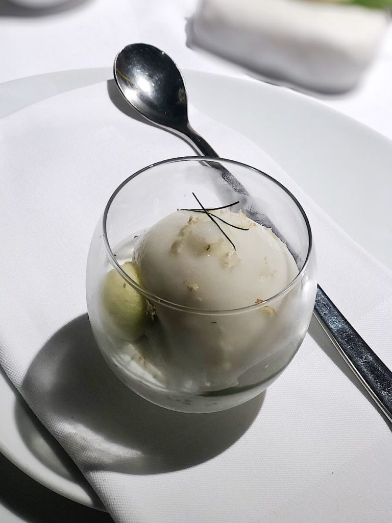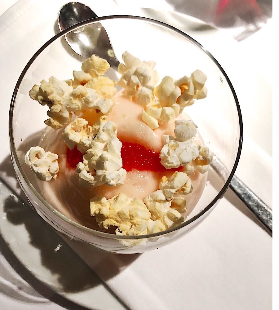 Pre desert od grejpa, mladog kukuruza i kokica, svojim je citrusno-gorkim okusom grejpa, slatkoćom kukuruza i hladnom kremastom teksturom nadograđenom hrskavošću kokica, autoritativno priveo kraju večeru u Monteu, baš kao što ju je autoritativno otvorio amuse bouche od domaćeg jogurta, hrena, komorača i većih kuglica zelenih jabuka. Desert od kandiranog patdližana s granitom od origana i notama ruže prikladno je zaokružio Monteov sinoćnji niz.
