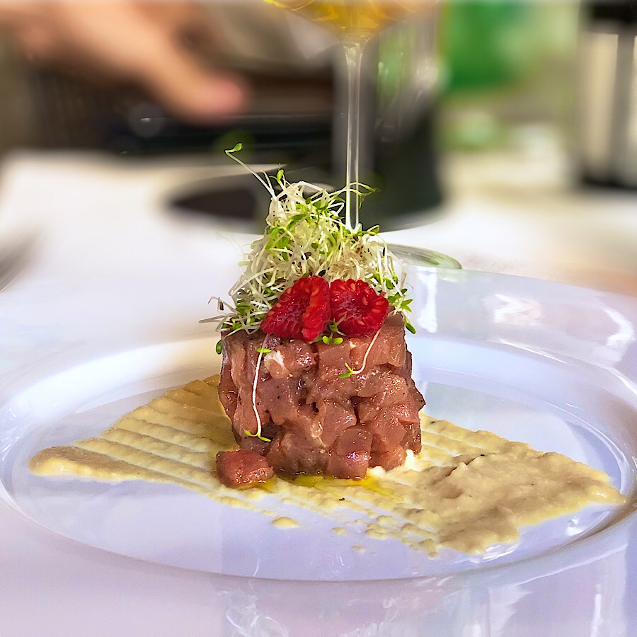 U Čoku smo u subotu odmah iza podneva prvo naručili kaneštrele na gradelama koje su bile delikatno slatke i nježne, tartar od tune koji se jako svidio našem prijatelju, jednom od utemeljitelja modernog istarskog vinarstva, te aromatičnu paštetu od bijele ribe. Zatim smo naručili legendarnog Čokova brancina kuhanog na pari.