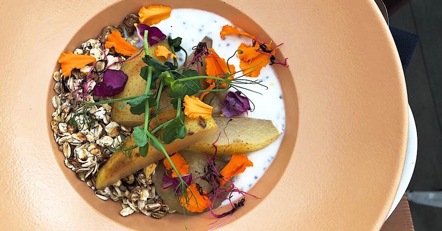 Jelovnik za doručak vrlo je dobro odabran. Tu su french toast, kroasani, jaja Benedict, kao i zdrava opcija: zdjela s grčkim jogurtom, svježim voćem i granolom. Naručili smo tu ultravitaminsku zdjelu koja je bila zaista svježa, teksturalno zanimljiva, prirodno slatka, jako velika i razmjerno jeftina: košta pedesetak kuna što nije mnogo s obzirom na golemu količinu zrelog voća.