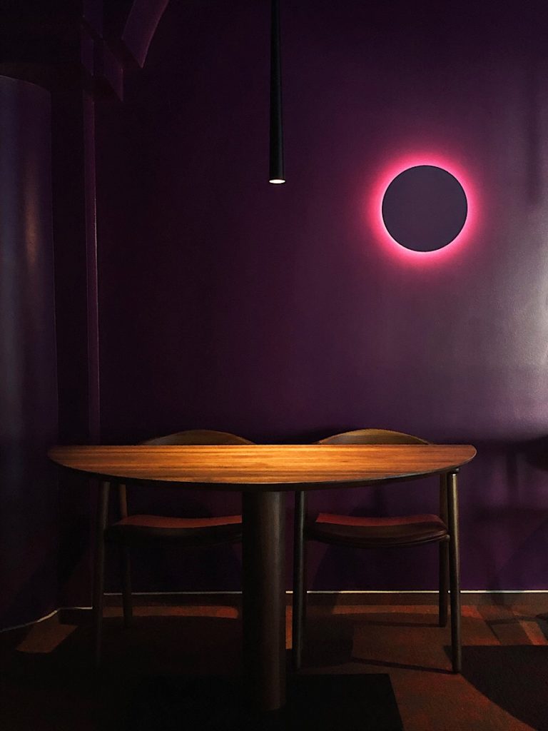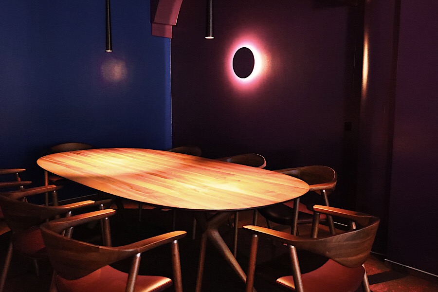 Cijelim prostorom dominiraju tople pastelne duboke boje Marka Rothka, a na zidu prve blagovaonice nalazi se metalna skulptura glave koji je izradio Nikola Vudrag, Horvatov prijatelj. Namještaj je naravno drven, moderan, elegantan i topao, beštek dolazi iz portugalskog Cultipola, noževi iz australskog DeeJoa, posuđe je Odd Standard…cijeli interijer stvara dojam koji asocira na Nomu.