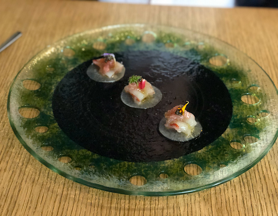 Tehnički gledajući, nigiri je bilo doslovno savršen, među najboljima bilo gdje na Zapadu, a i okusi su nam se baš jako svidjeli.mOsim sushija milanese, kod Wickyja smo pojeli set malo konvencionalnijih nigirija (ali opet bez soje i s mediteranskim dodacima), pa marinirani daikon s tartarom od tune i kavijarom, vrlo fini file brancina poširan u consommeu od maslina, te apsolutno spektakularnu klasičnu japansku svinjetinu kuhanu 16 sati pa glaziranu u misu, ali pripremljenu toliko precizno i s toliko pažnje u detaljima da daleko nadilazi uobičajene predodžbe o tom jelu. . Chef tvrdi da se radi o prastaroj tehnici tipičnoj za kuhinju iz Kyota, a mi smo sa zadovoljstvom konstatirali kako je riječ o jednom od najfinijih komada svinjetine koji smo probali u Europi.