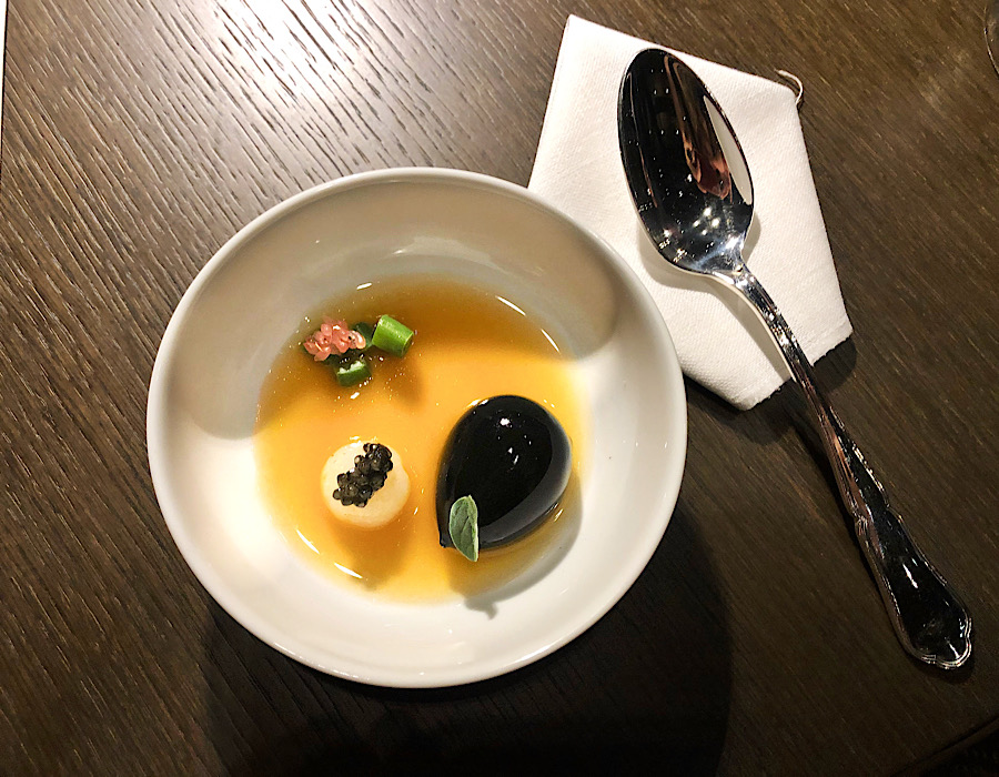 Bartolini svoj pristup gastronomiji opisuje kao suvremenu klasiku. To smo baš i dobili. Crna, želatinozna pralina od naglašeno zadimljenog patlidžana doimala se jako suvremenom, dok je bombon od gusjih jetara, manga i luka bio vrlo klasičan, ako klasičnom smatramo hranu koja je bila moderna prije dvadesetak godina.