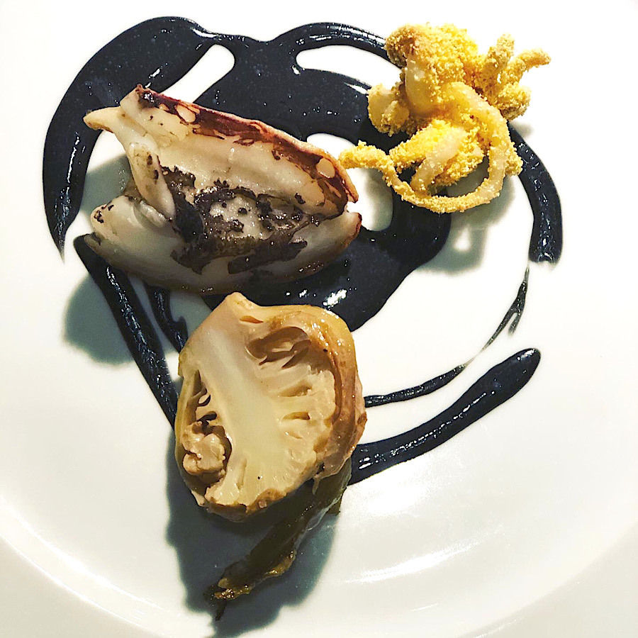 Dimljena sipa s mirtom i ukiseljenom cvjetačom bazirala se na međuigri dima, kiseline i tri različite teksture, dok je redukcija cacciucca (vrste ligurskog brodeta) u jelu s hobotnicom bila impresivno snažna, s puno anisa i okusa iskuhanih oklopa i glava škampa ili jastoga.