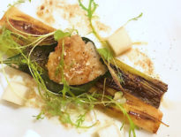 Tartar biftek s kamenicom serviran u gustom zabajonu s fermentiranom sojom i morskim travama, idealan je primjer modernog kinesko europskog fusiona. Slatko mesne jakovske kapice (kao da su se pekle na svinjskoj masti), s mekano hrskavim lignjama u sweet and sour umaku, raskošna su posveta tradicionalnoj kineskoj kuhinji: kiselina u sweet and sour dolazila je iz citrusa, koji su okruživali lignje i školjke. Slijedio je školski pečeni brancin (hrskava kora, čvrsto ali mekano meso) s komadićima crnih tartufa, raviolima s gljivama, i sirovim portobello gljivama. Začini u raviolu dali su kineski karakter ovom tipičnom francuskom jelu.