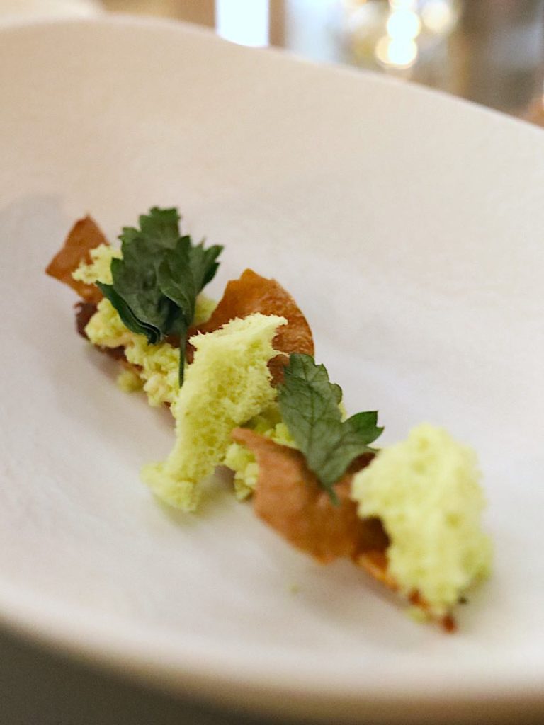 Nasuprot ovom složenom ritualu, jelo od wagyua čisti je minimalizam: savršeno pečeni putrasti steak japanske govedine serviran je s robuchonovski svilenkastim pireom od celera. Uz jedan mali dodatak: mikrosolanu sa soli koja se proizvodi u Noelu. Brancin na bok choiju obogaćen je teksturom tartara od bok choija i sjajnom kremom od češnjaka iz kojeg je eliminiran sav alicin. Hrskava lignja servira se u adiktivnom tartar umaku iz sifona, a uz nju se također poslužuje koktel, baziran na tekili, limeti i ras el hanoutu. Neka se jela, pak, poslužuju s čajevima.