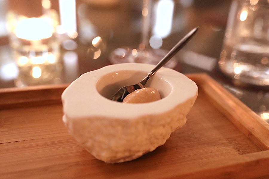 Sad su, pak, iz sfere fine dininga krenuli prema pravoj visokoj kuhinji s puno neobičnih i inovativnih elemenata. Primjerice, sastavni dio degustacijskog menija postao je olfaktivni slijed. To znači da vam na stol donesu trakice natopljene parfemom drveno mošusno pljesnivih nota i koktel od bourbona Ezra Brooks i tinkture morske vode, koji također sadrži lagano pljesnive nijanse. U središtu ove komplicirane prezentacije nalazi se ultramekana hobotnica na kremi od Stiltona koji je, jasno, opako pljesniv i fenomenalno funkcionira s parfemom i koktelom: jak, čisti okus hobotnice izvrstan je kontrapunkt teškim ali opojnim okusima i mirisima Stiltona, koktela i parfema.