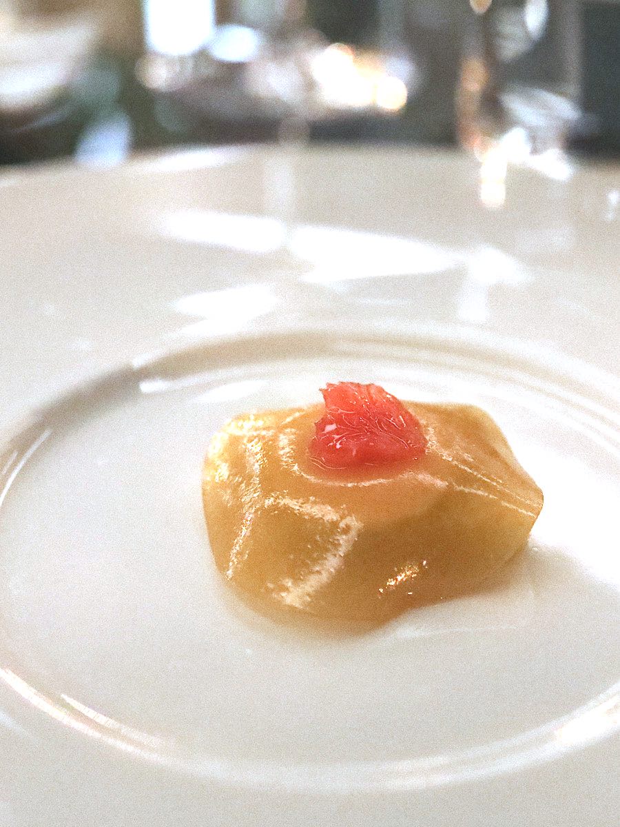 Nasuprot ovom složenom ritualu, jelo od wagyua čisti je minimalizam: savršeno pečeni putrasti steak japanske govedine serviran je s robuchonovski svilenkastim pireom od celera. Uz jedan mali dodatak: mikrosolanu sa soli koja se proizvodi u Noelu. Brancin na bok choiju obogaćen je teksturom tartara od bok choija i sjajnom kremom od češnjaka iz kojeg je eliminiran sav alicin. Hrskava lignja servira se u adiktivnom tartar umaku iz sifona, a uz nju se također poslužuje koktel, baziran na tekili, limeti i ras el hanoutu. Neka se jela, pak, poslužuju s čajevima.