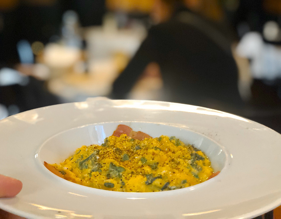 Salata je izgledala veličanstveno klorofilno, te je namirisala cijelu blagovaonicu. Vrlo žuta i preobilna fritaja osvježena je blago gorkim, srednje krupno narezanim šparogama. Divlje šparoge, i istarske i dalmatinske, važan su dio našeg gastronomskog identiteta. Restoran koji prvi nabavlja divlje šparoge zorno pokazuje koliko mu je stalo do zaista vrhunskih i zaista sezonskih sastojaka (u čemu je, među ostalim, tajna Carpacciova uspjeha).