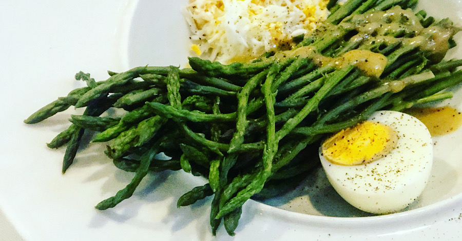 Salata je izgledala veličanstveno klorofilno, te je namirisala cijelu blagovaonicu. Vrlo žuta i preobilna fritaja osvježena je blago gorkim, srednje krupno narezanim šparogama. Divlje šparoge, i istarske i dalmatinske, važan su dio našeg gastronomskog identiteta. Restoran koji prvi nabavlja divlje šparoge zorno pokazuje koliko mu je stalo do zaista vrhunskih i zaista sezonskih sastojaka (u čemu je, među ostalim, tajna Carpacciova uspjeha).