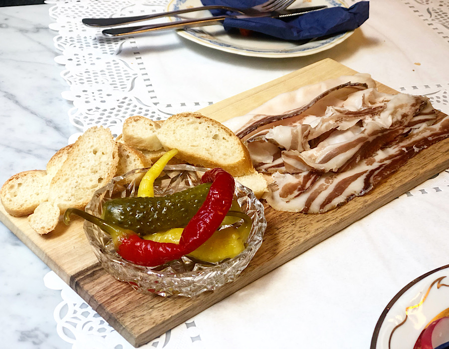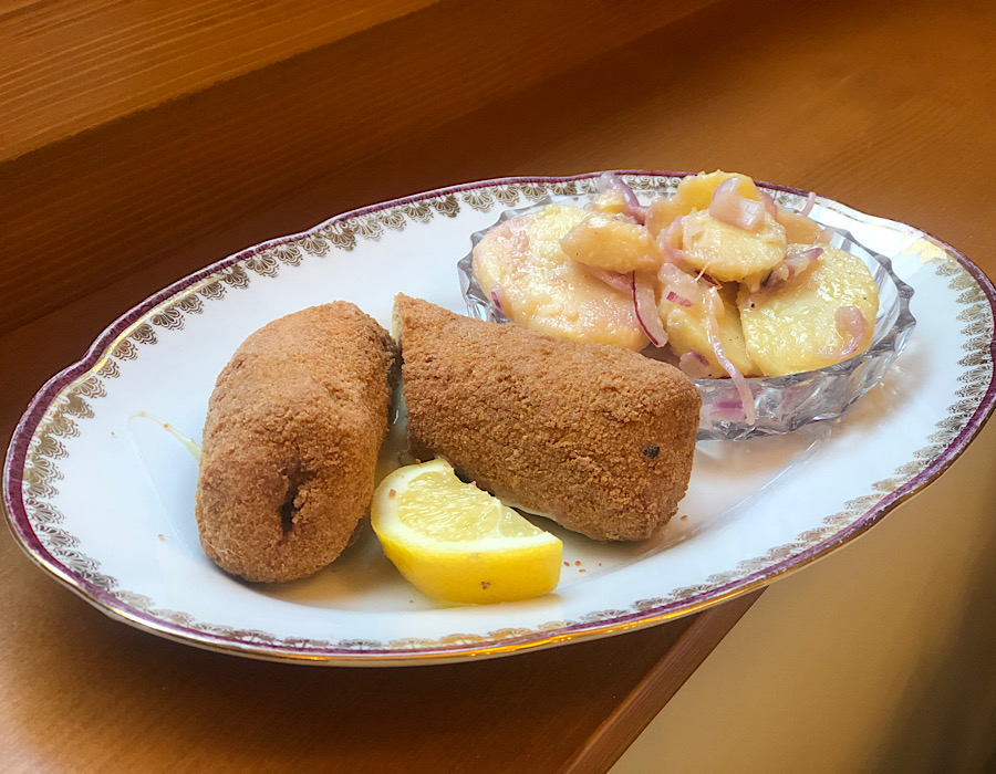 I ostatak menija prilično je autentičan: pohana piletina, faširani šnicli, pastrva, grenadir marš, krpice sa zeljem, štrukle, goveđa juha, ajngemahtec. Daskice sa suhim mesom pune su proizvoda s potpisom: Škrlinov pršut iz Roškog slapa, izvrstan špek Ane Deklić iz Županje, čvarci Zlatnog čvarka iz Zaprešića.