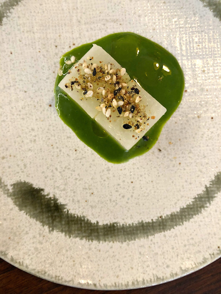 Štrukle od sira proizvedenog u restoranu pripremljene tehnikom tipičnom za gyoze (jedna strana kuhana je na pari a druga zapčena) funkcionirala je kao perfektni comfort food, dok su se vinkovačke, jako zadimljene vrtne šparoge, s pireom od usoljenih ruža i prepeličjim jajem doimale kao heavy metal verzija gastronomskog Posvećenja proljeća.