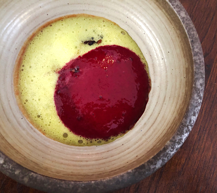 Dimljene trešnje sa tri godine starom usoljenom žutom šljivom tretiranom kao umeboshi (premda je originalni ume zapravo bliži marelici nego šljivi) s kumkvatom i umakom od lanjskih zelenih rajčica jelo je, kako da to kažemo a da ne pretjeramo, koje bi i Ana Roš i Rene Redzepi odmah stavili na svoje menije.
