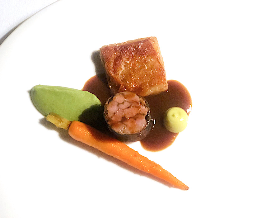 Ovo raskošno prezentirano jelo još je impresivnije u okusima i teksturama: apsolutni je šampion savršeno hrskava, sočna potrbušina ultraintenzivnog okusa, koja predstavlja esenciju pečene janjetine. Oštra, slatko-kisela mrkva u ruti izvrsno se nadopunjavala s jakim okusom mesa, ali i svi su drugi elementi Boškinčeve janjetine sinoć pjevali. Ovo jelo samo po sebi zaslužuje priznanje poput Michelinove zvjezdice.