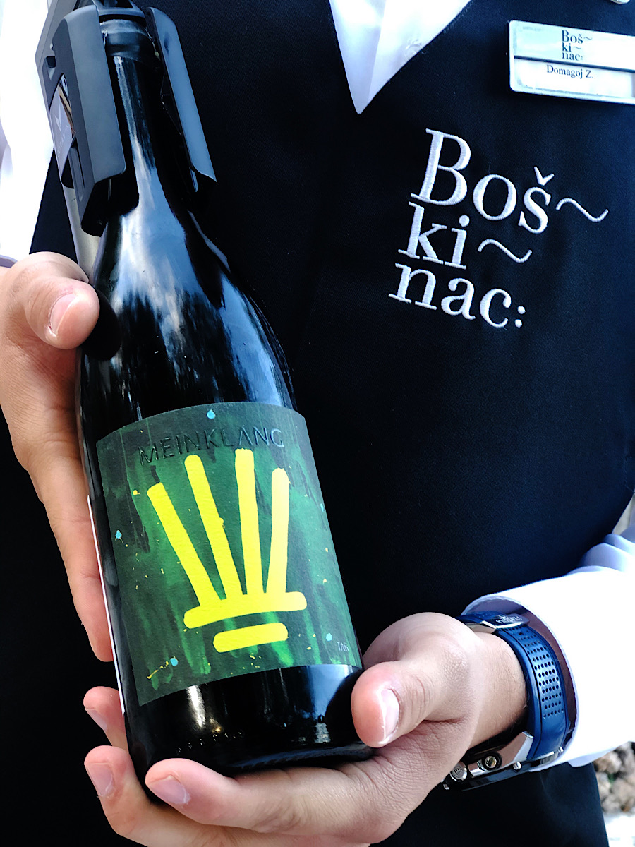 Sommelier Domagoj Zorbas složio je četiri vinske pratnje, koje se nude uz veliki degustacijski meni. Mi smo se odlučili za niz od osam biodinamičkih vina, uključujući Drappierov Blanc de blancs, Boškinčev Ocu iz 2015. i Claiev Sveti Jakov iz 2013. koja su vrlo dobro funkcionirala uz skoro sve sljedove. Boškinac je najbolji otkad postoji. Riječ je o restoranu s inteligentnom, tehnički uglavnom perfektnom modernom lokalnom kuhinjom, s tek minimalnim pogreškama, i s veoma kompetentnim izborom vina.