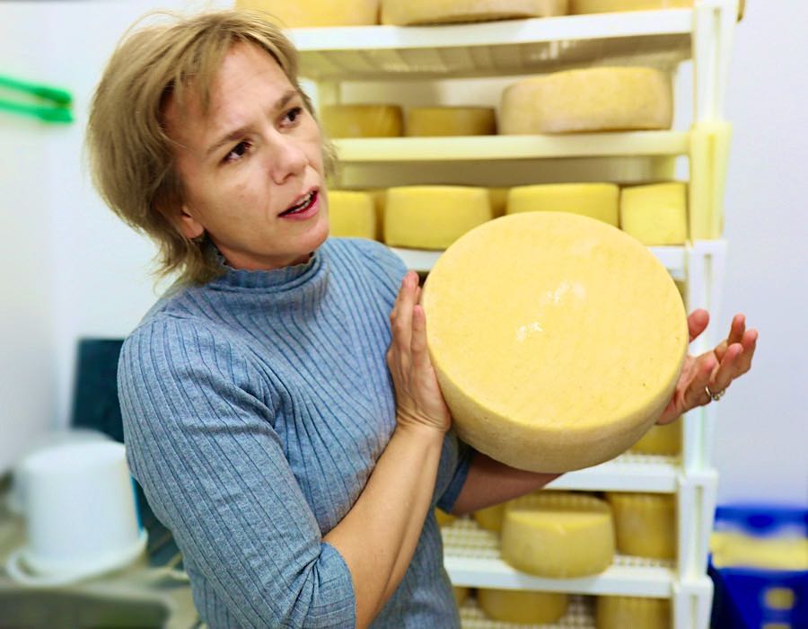 Primjerice, njihova je metoda odležavanja sira prilično neobična. U istoj komori jedni kraj drugih leže kolutovi mladih i starih sireva. U razmaku od metar i pol vidjeli smo sireve napravljene 14. listopada, sireve oblikovane u kolovozu i sireve proizvedene u svibnju. “Vidjeli smo da posve mladi sirevi daju mliječnu svježinu odležanim sirevima, a da fermentacijske arome odležanih sireva obogaćuju mlade sireve. Ova nam se neobična interakcija pokazala dosta uspješnom,” smatra gospođa Orbanić, koja nije propustila priliku da provodeći nas između polica okrene nekoliko kolutova sira (standardna procedura tijekom odležavanja) i da nam pokaže sireve napadnute grinjama, koje kori siru daju posebnu dimenziju okusa.