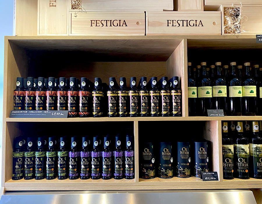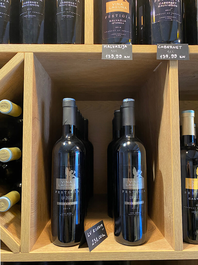Tri kantuna drže najširi raspon Laguninih vina, uključujući malvaziju Vižinadu i luksuzni crni cuvee LV. Tu su, naravno , Lagunina vrhunska ulja; posebno treba naglasiti da Tri kantuna prodaju mlada nefitrirana ulja po vrlo dobroj cijeni s obzirom na kvalitetu, kao i na činjenicu da se u takvim uljima može uživati jedino u ovo doba godine, dok traje berba maslina.