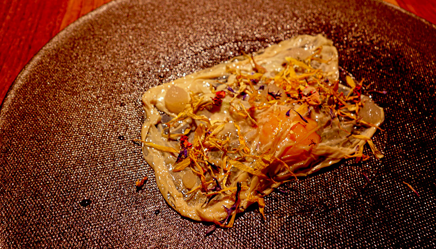 Gusja je masnoća karfiol transformirala u ultrakremastu smjesu koja nas je podsjetila na foie gras, koštice su osigurale hrskavu teksturu i tamne tonove, beluga je naprosto jedna od najukusnijih stvari na svijetu, dok se jus od trlje svojom mineralnošću produktivno suprotstavljao prebogatim okusima ovog briljantnog jela.