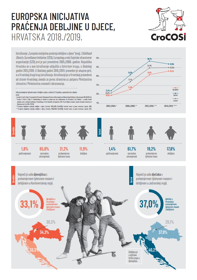U Hrvatskom zavodu za javno zdravstvo predstavljeni su novi rezultati istraživanja Europska inicijativa praćenja debljine u djece, Hrvatska 2018./2019. (CroCOSI)“ Europskog ureda Svjetske zdravstvene organizacije. Istraživanje je predstavila voditeljica za Republiku Hrvatsku prof.dr.sc. Sanja Musić Milanović. Rezultati istraživanja su depresivni.