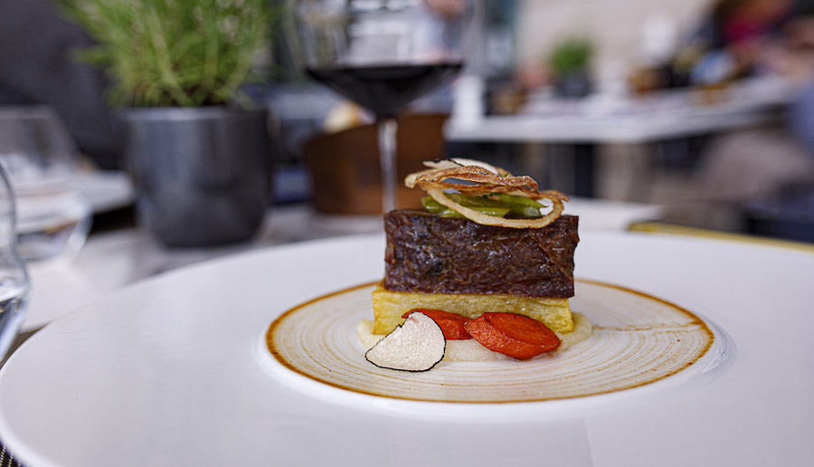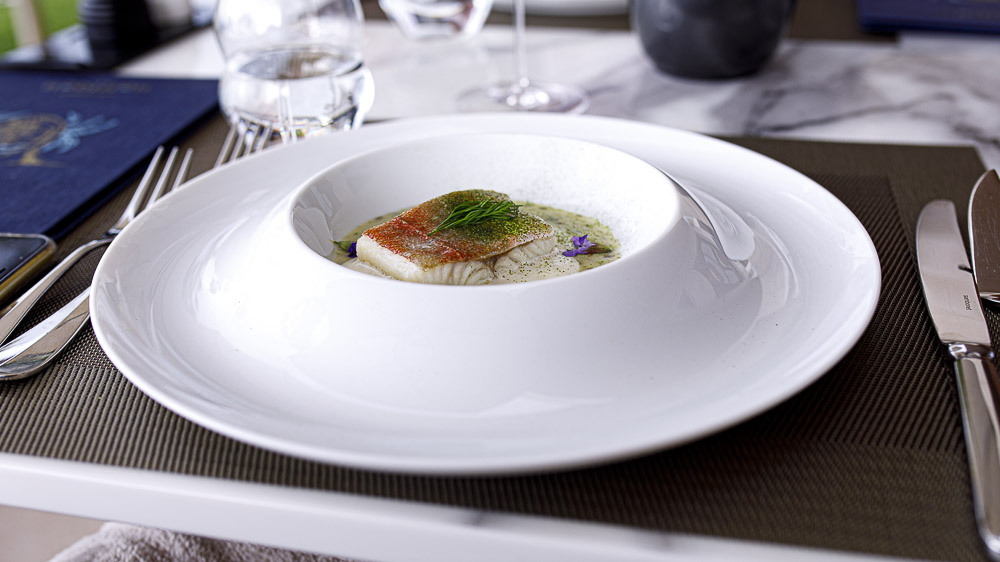 File lastavice poširan u maslacu s kremom od algi i začinskog bilja bio je kremast i bogat, dok su prezentacijom najviše iznenadili dugo suvidirani goveđi obrazi, koji su izgledali poput propisno pečenog steaka, da bi bili mekani skoro kao foie gras.
